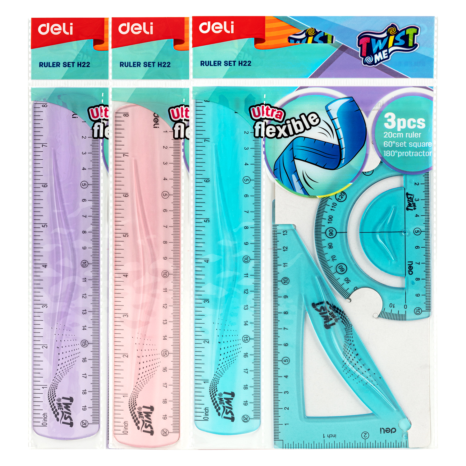 Deli-EH22 Set di righelli 3 PZ (righello 20cm